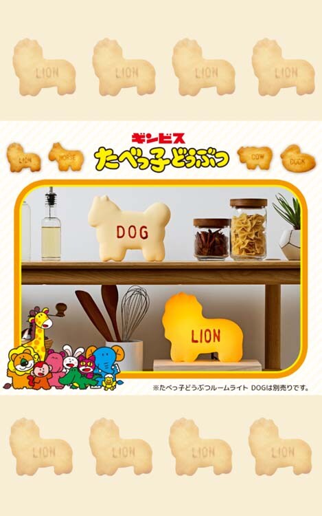 ●たべっ子どうぶつのビスケットがルームライトに。あたたかみのある光で、お部屋をやさしく照らします。