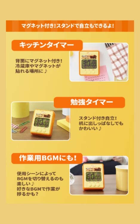 ●当キッチンタイマーは、料理中や勉強、作業の時間管理など様々なシーンに役立ちます。