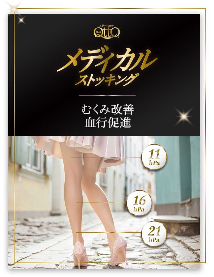 ●つらい脚のむくみを予防・改善、血液やリンパ液の流れを促進するメディカルストッキング。