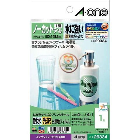 【エーワン ラベルシール インクジェット はがきサイズ 耐水 光沢 フィルム 白 29334の商品詳細】