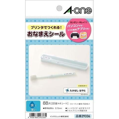 【エーワン おなまえシール 水に強い インクジェット 染料22面 36×8mm 29336の商品詳細】