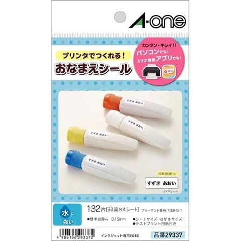エーワン おなまえシール 水に強い インクジェット 染料33面 24×8mm 29337 (4シート)