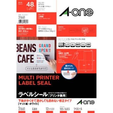 エーワン ラベルシール 下地 隠せる 透かしても読めない 修正 4面 148.5×105mm 31661 (12シート)