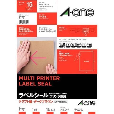 【エーワン ラベルシール クラフト紙 ダークブラウン 1面 ノーカット 31741の商品詳細】