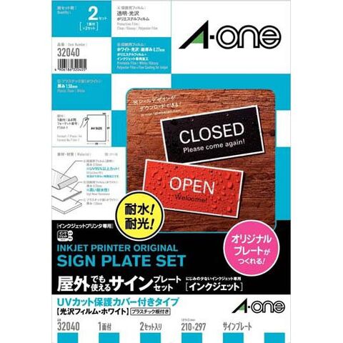 エーワン 屋外使える サインプレート インクジェット 光沢 フィルム 白 32040 (2セット)
