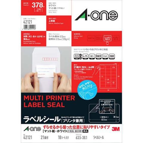 エーワン ラベルシール ずらせるから狙った位置に貼りやすい 宛名 角丸 21面 42121 (18シート入)