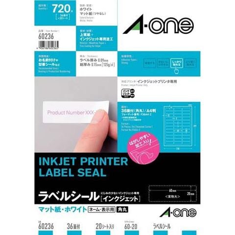 【エーワン ラベルシール インクジェット 36面 60×20mm 60236の商品詳細】