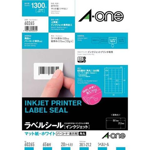 【エーワン ラベルシール インクジェット 65面 38.1×21.2mm 60265の商品詳細】