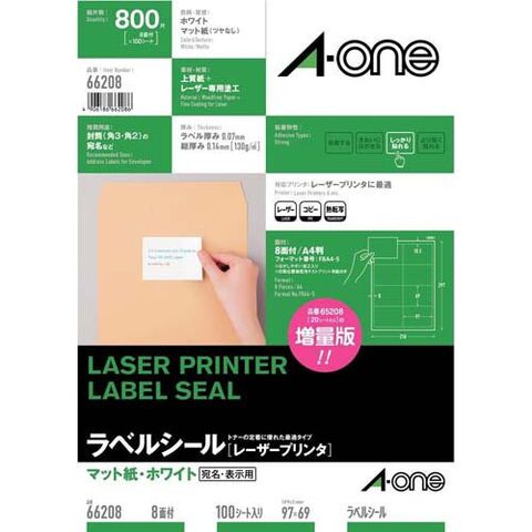 エーワン ラベルシール レーザー 8面 97×69mm 66208 (100シート)