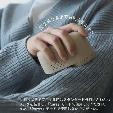 ・衣類を平らなところに置いて毛玉をカットするのはもちろん、服を着たままでも毛玉をカットすることができます。
