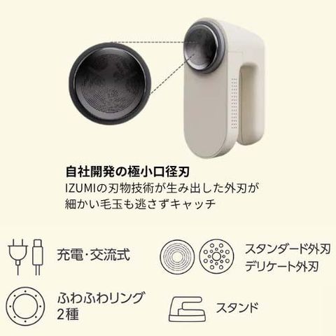 ・ストッキングやタイツなど、これまで毛玉のケアが難しかった繊細な衣類にも、IZUMIの刃物技術から生まれた「デリケート外刃」がやさしく毛玉を取り除きます。