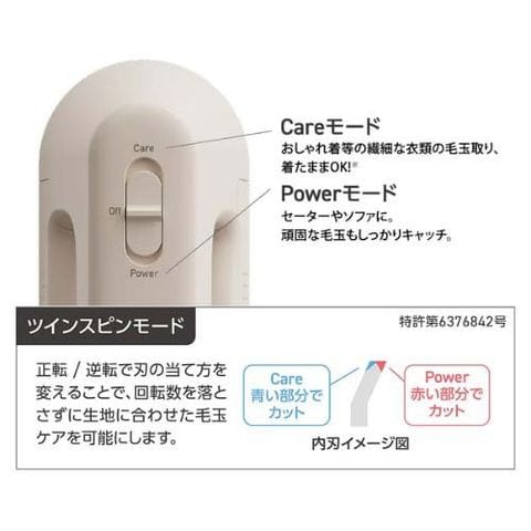 ・Careモード:おしゃれ着等の繊細な衣類の毛玉取り、着たままカット可能
