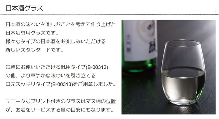 ●また、ユニークなプリント付きのグラスはマス柄の位置がお酒をサービスする量の目安にもなります。
