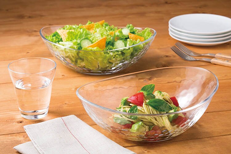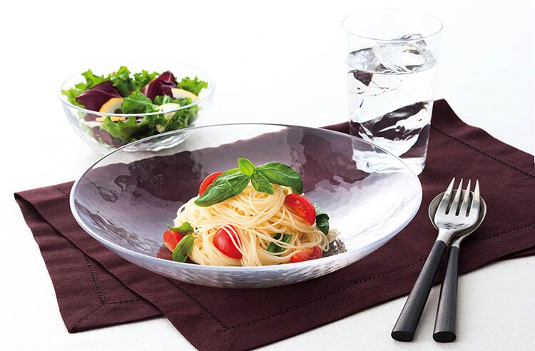 ●ガラス素材なので、いつものお料理が映えるのでよりおいしそうに見えて食欲をそそります。