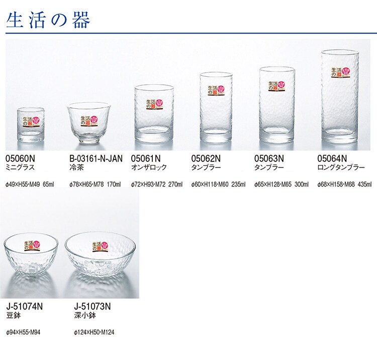 生活の器 オンザロックグラス 食洗機対応 日本製 約270ml 05061N (6個入)