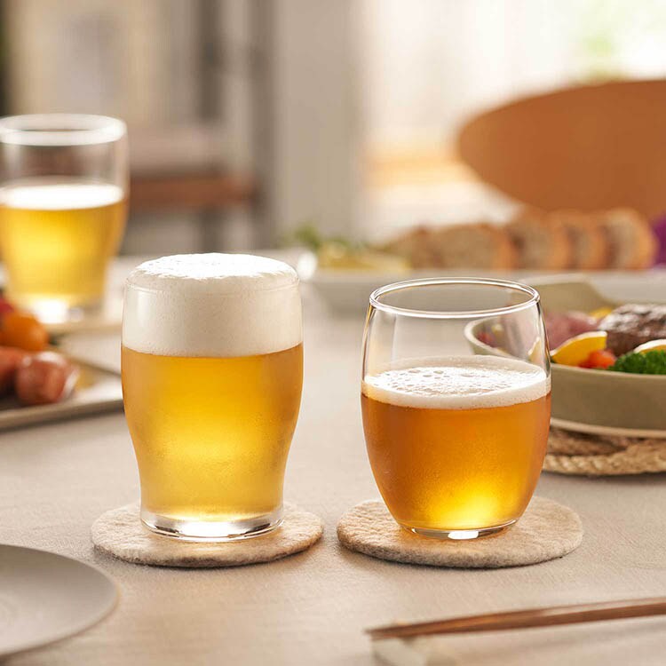 ●ガラス製のグラスはビールをより際立たせ、美しく見せてくれるのでパーティーや特別な日の夕食にぴったりです。