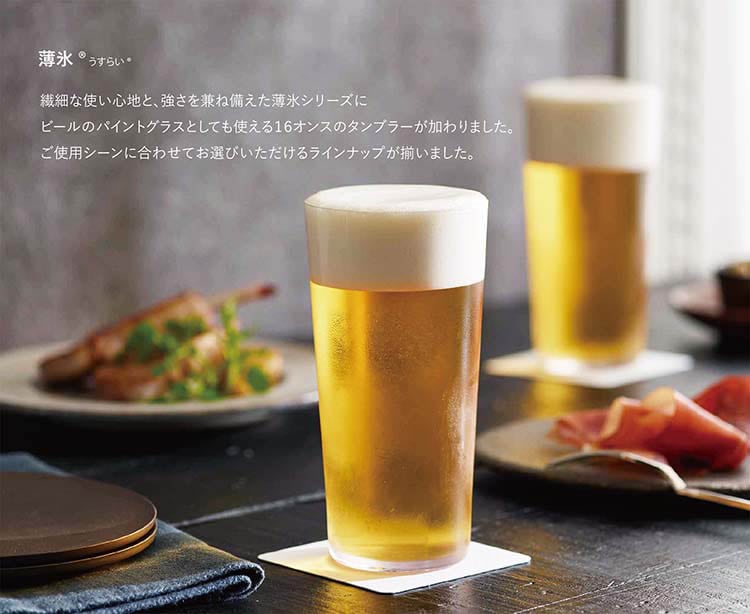 ●繊細な使い心地と、強さを兼ね備えた薄氷シリーズのビールのパイントグラスとしても使える16オンスのタンブラー。