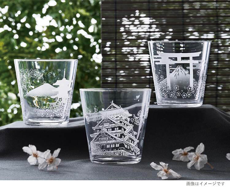【ロックグラス 城とさくら柄 340ml 日本製 食洗機対応 B-00111-J445の商品詳細】
