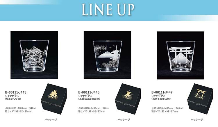 ●日本の象徴をモチーフに、桜と組み合わせた美しい情景をグラスに表現しました。