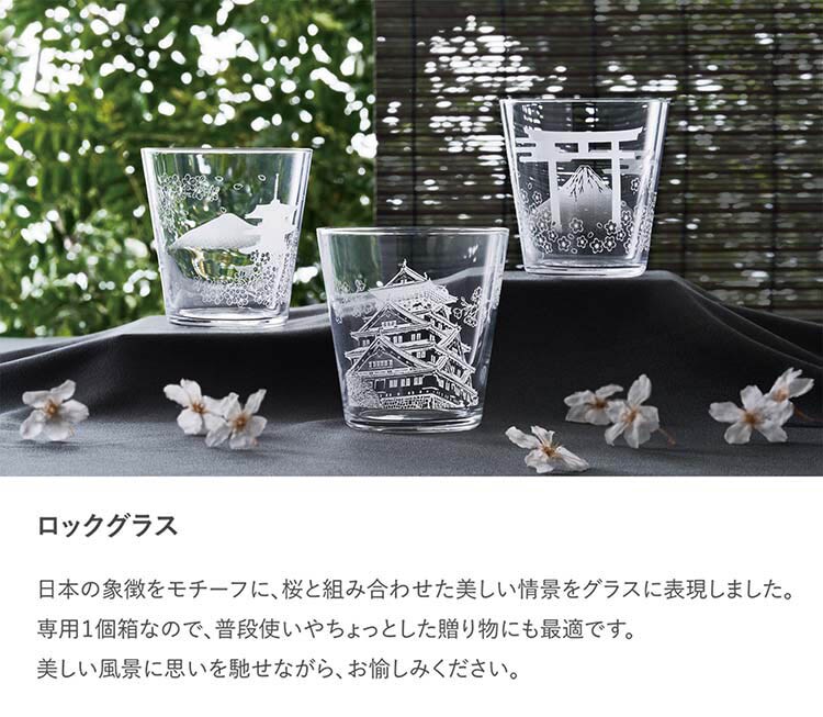 ●日本の象徴をモチーフに、桜と組み合わせた美しい情景をグラスに表現しました。