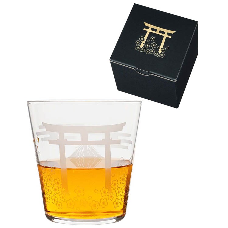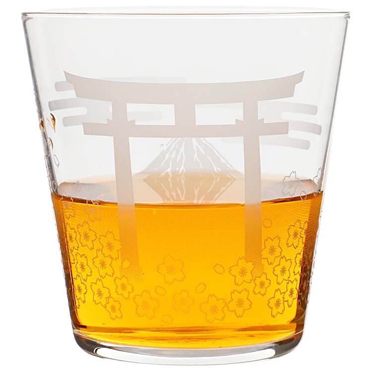 ロックグラス 鳥居と富士山柄 340ml 日本製 食洗機対応 B-00111-J447 (1個)
