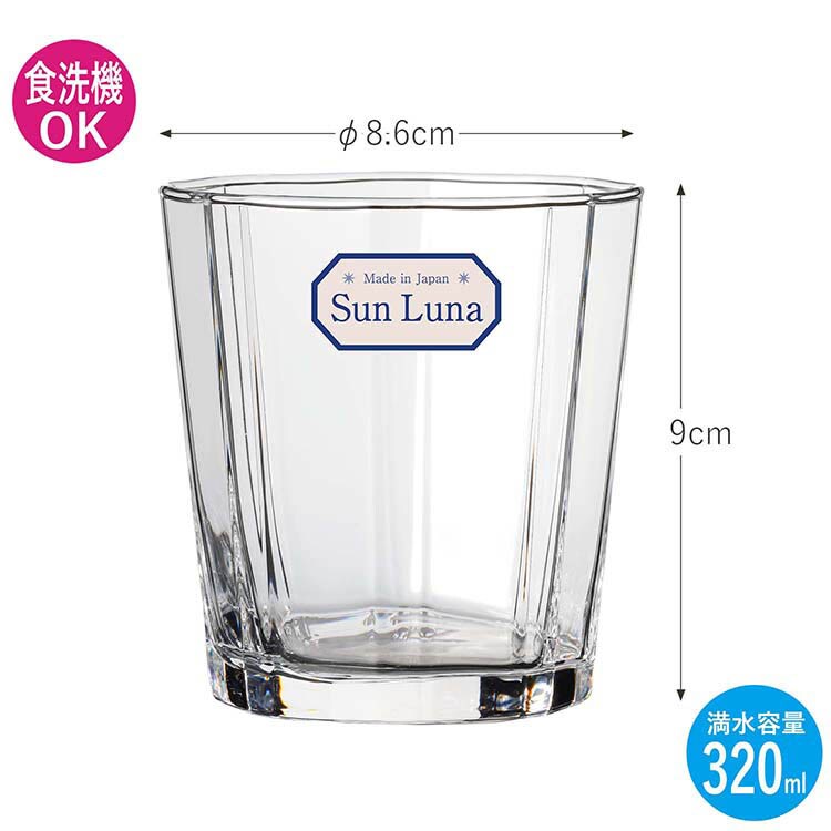 Sun Luna オンザロック ロックグラス 320ml 日本製 食洗機対応 B-23701-JAN (3個)