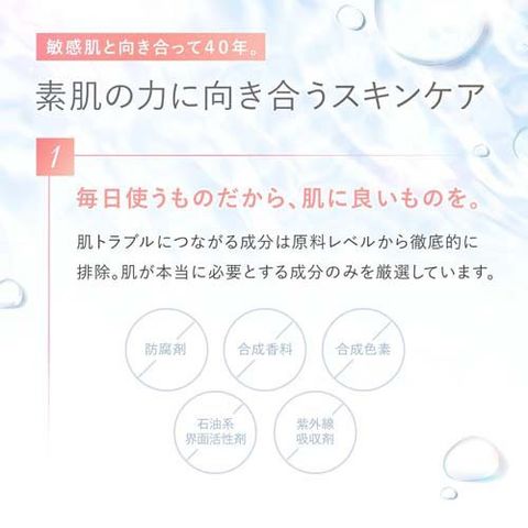 ・ご使用中、赤み、はれ、かゆみ、しげき、色抜け(白斑等)や黒ずみ等の異常があらわれた時にはご使用をおやめください。尚、そのまま使用を続けますと、症状を悪化させることがありますので、ファンケル美容相談室あるいは皮膚科専門医にご相談ください。