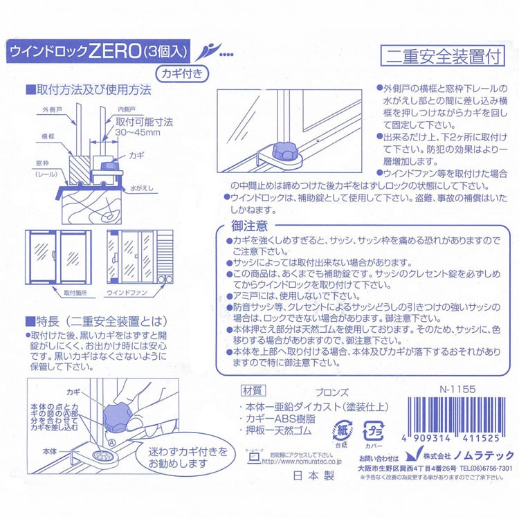 | 本体:亜鉛ダイカスト カギ:ABS樹脂 押板:天然ゴム |