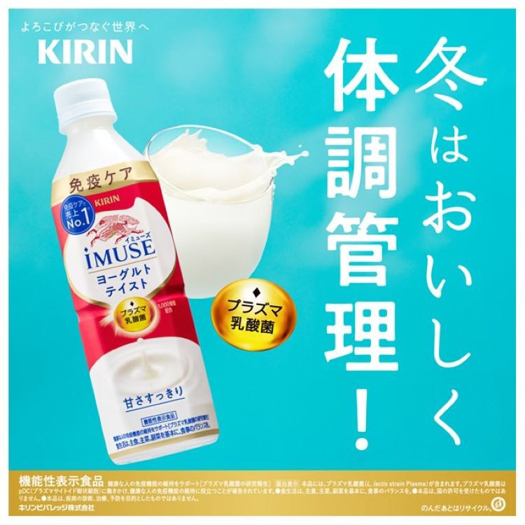 ●「キリン イミューズ ヨーグルト」はプラズマ乳酸菌の働きで、健康な人の免疫機能の維持に役立つことが報告されています。