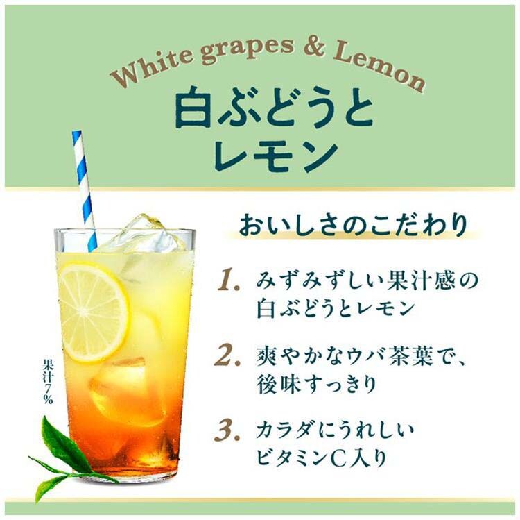 ●白ぶどうとレモンのさっぱりした甘酸っぱさがありながら、爽やかなTEAですっきり飲める味わい。※果汁7% ※ビタミンC入り