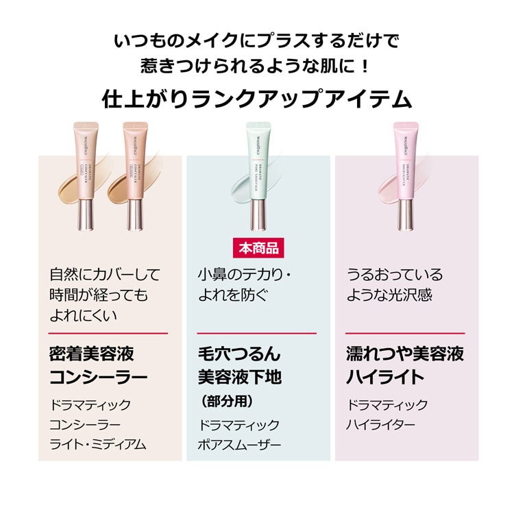 ●いつものベースメイクにプラスするだけで、惹きつけられるような肌になれる毛穴つるん美容液下地(部分用)。