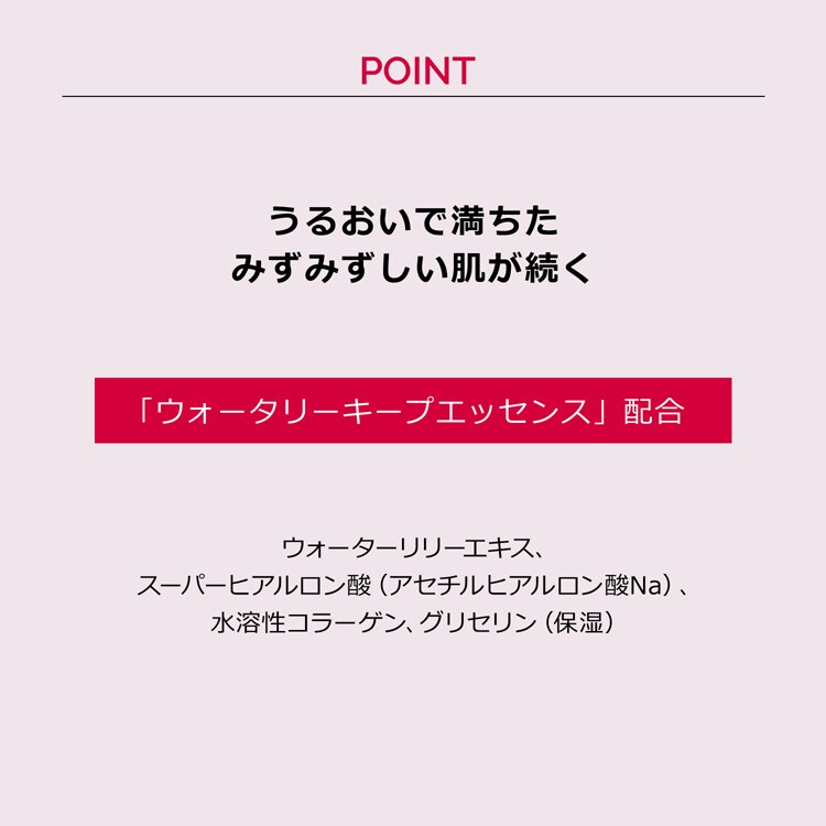 ●ウォータリーキープエッセンス配合でうるおいで満ちたみずみずしい肌に。
