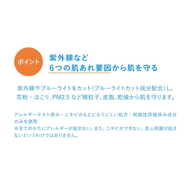 ※商品のSPF表示及びPA表示は、国際SPF試験法に定められている塗布量1平方センチメートルあたり2mgを皮ふに塗布して測定した結果です。