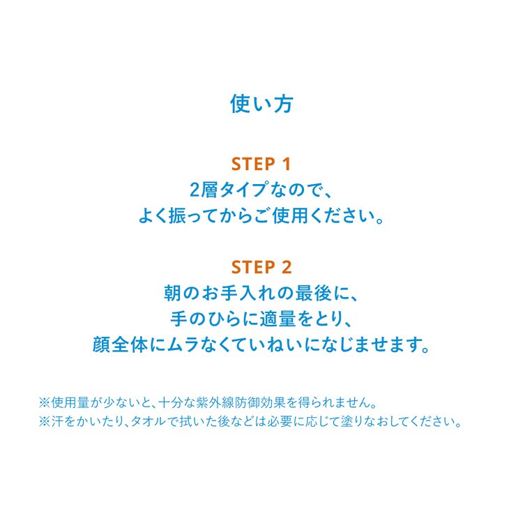 ・使用量が少ないと、十分な紫外線防御効果が得られません。