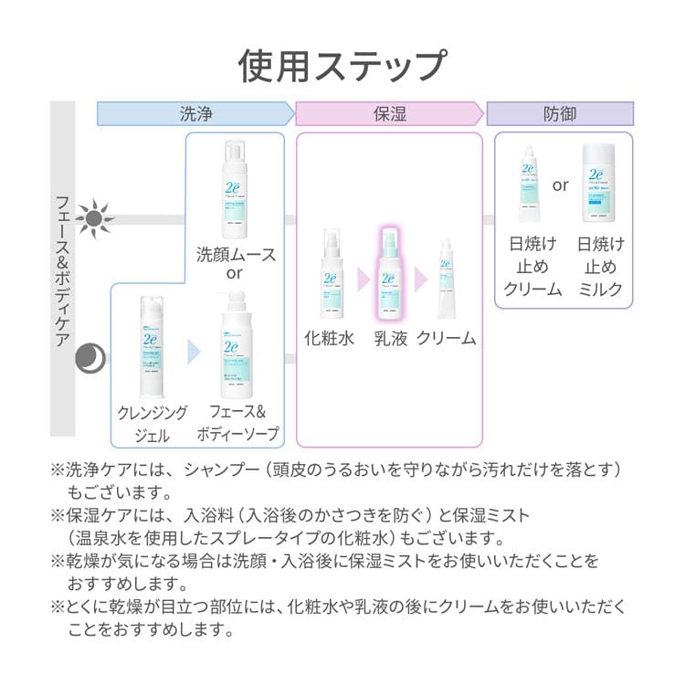 ●うるおいに包まれたやわらかな肌に導く乳液。みずみずしくしっとりとした感触です。