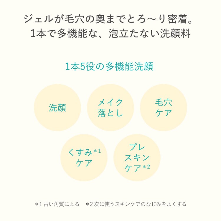 ●1品で多機能な、泡立たない洗顔料。