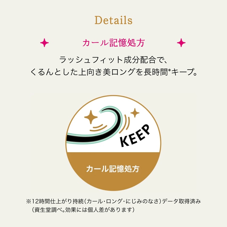 (※1)12時間仕上がり持続(カール・ロング・にじみのなさ)データ取得済み(メーカー調べ。効果には個人差があります。)。
