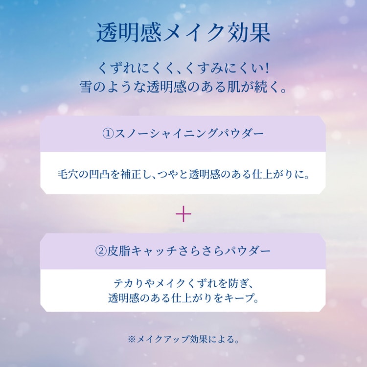 ・おしろいとして使用する際のパフの使い心地や仕上がりが悪くなった場合は、別売りの「スノービューティー スムースフィットパフ N」をお求めください。