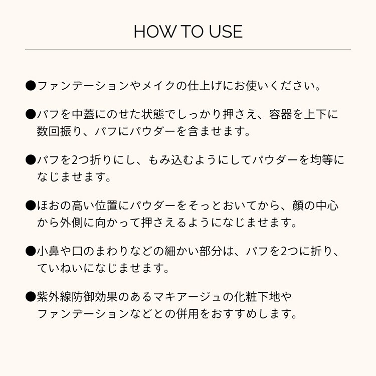 ・使い心地や仕上がりが悪くなった場合は、新しいパフをお求めください。