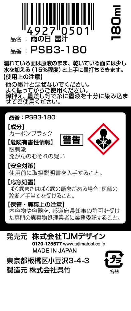 【タジマ 雨の日墨汁 PSB3-180の商品詳細】