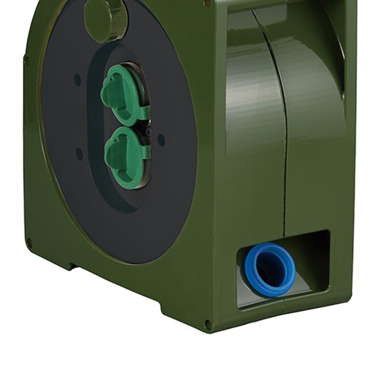 | 屋外用(防雨型) 電線長:10m 製品定格(電線を巻いたままの状態で使用できる電流値):125V・6A コンセント仕様:2口*15A*125V(防雨防塵保護キャップ付き) カラー:オリーブグリーン 日本製 (材質)本体:ABS 電線:銅 シース:PVC塩化ビニール 付属品:プラグカッパー(電源プラグ用防雨保護カバー) |