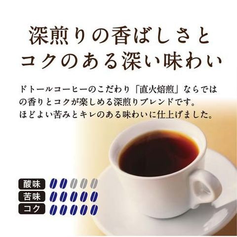 ●ドトールコーヒーのこだわり「直火焙煎」ならではの香りとコクが楽しめる深煎りブレンドです。