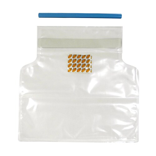 | ハイバリア袋(複合ラミネート袋)・ネルパック専用エージレス(脱酸素剤)・エージレスアイ(酸素検知センサー)・ガッツ棒(クリップ凸凹1組)。 |
