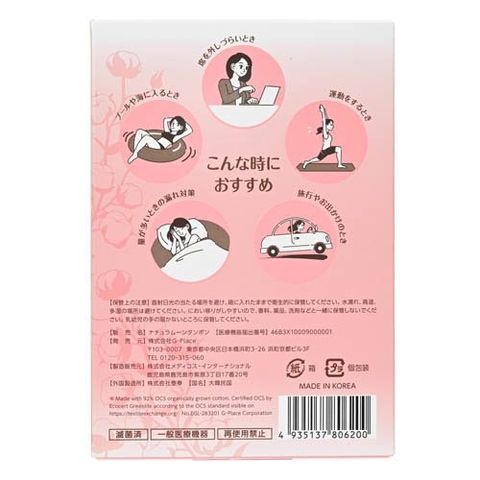 | (吸収体) オーガニックコットン (アプリケーター) ポリエチレン (紐) ポリエステル、ビスコースレーヨン |