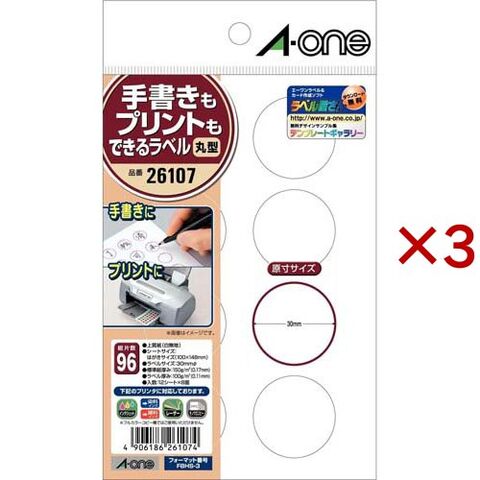 エーワン 手書きもプリントもできるラベル 丸型 8面30×30mm 26107 (12シート×3セット)