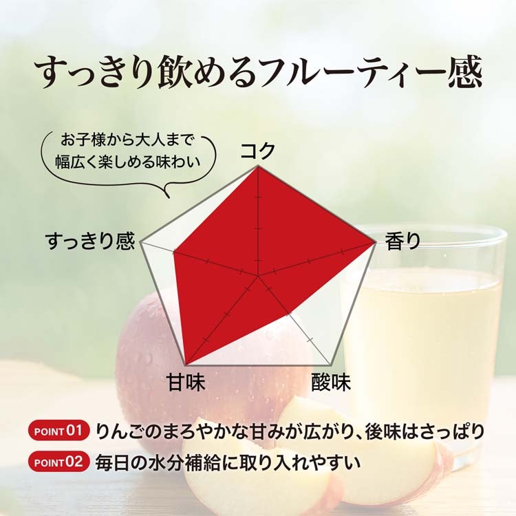 ●太陽の恵みを受けて育った厳選アップル果汁100%~果汁100パーセントのりんごジュース(アップルジュース)です。リンゴの甘みを大切にしたさっぱりした飲み心地をお楽しみ頂けます。お手頃飲みきりサイズで、そのままの飲用やカクテルの割り材としても。常温保存可能なので、お子様のおやつ用缶ジュースとしてストックにも便利。保存料・着色料等は不使用。安心の国内製造品。