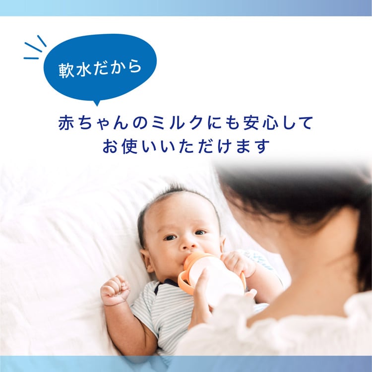 ●軟水なので小さなお子様から幅広くお飲みいただけます。また、赤ちゃんのミルクにもお使いいただけます。