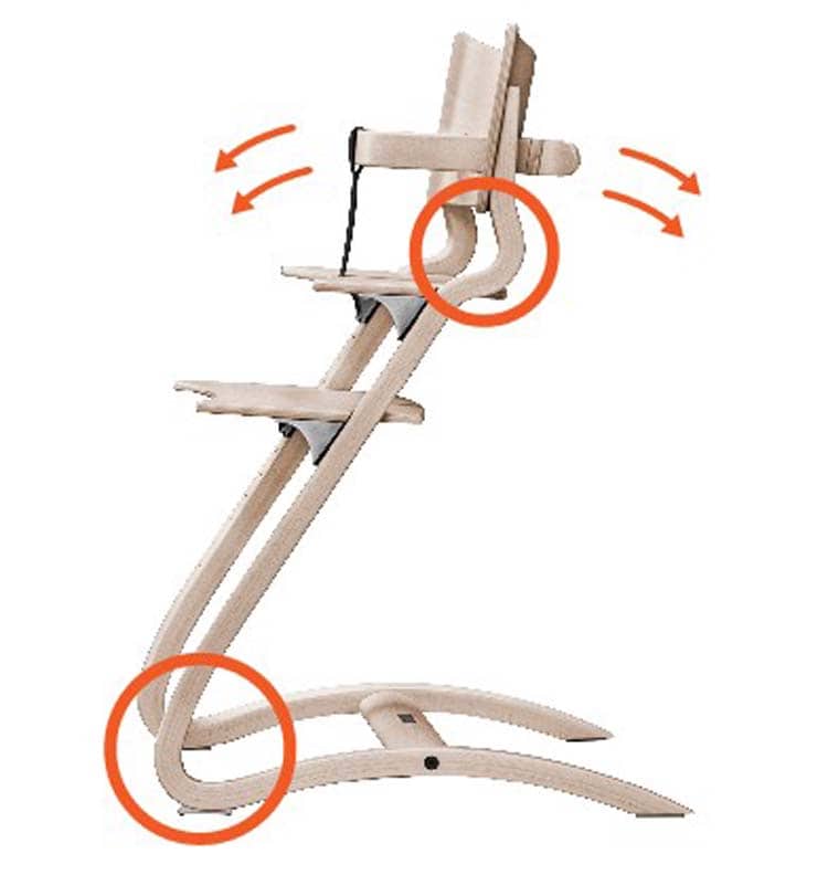 ●滑らかな曲線で構成され、前後にわずかに動くように設計されたリエンダー社のハイチェア。じっと座っていられない子どものために、動きを吸収するよう考え抜かれた設計としなやかな材質で作られました。しなやかな材質を使用することで「しなり」が生じ、お母さんに抱っこされているような心地よさを与えます。