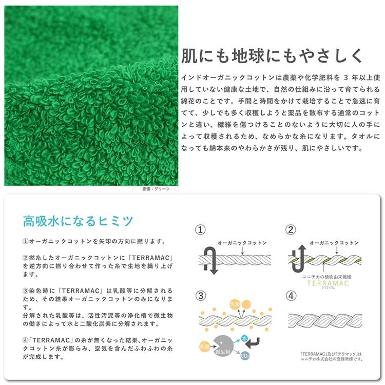 【今治タオル Colorful Organic ミニハンカチ 肌にやさしい高吸水タオル グリーンの商品詳細】
