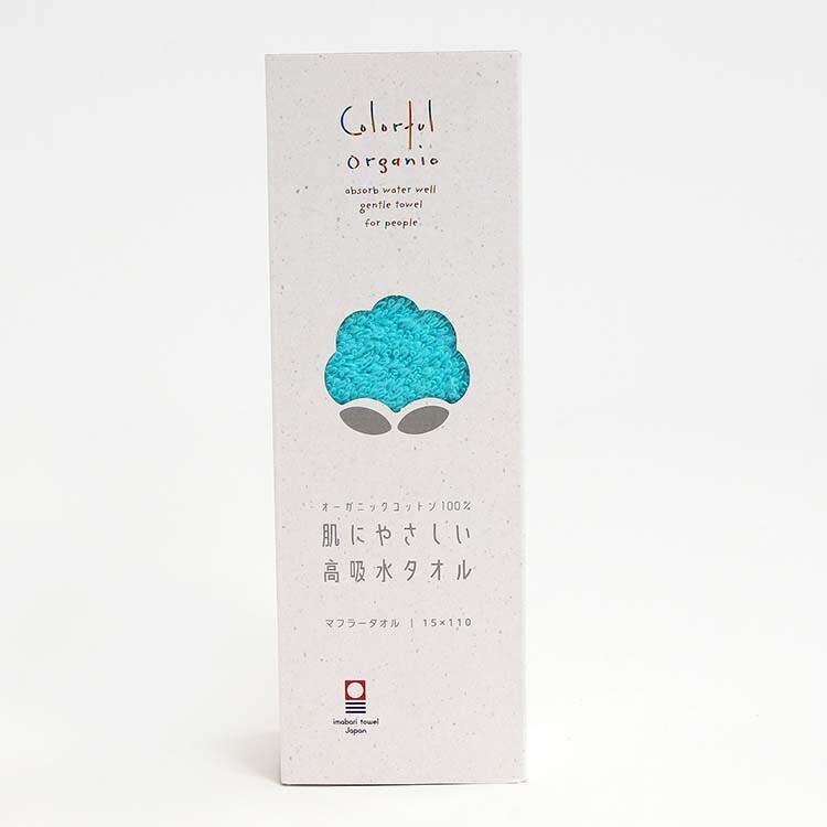 今治タオル Colorful Organic マフラータオル 肌にやさしい高吸水タオル ライトブルー (1枚)